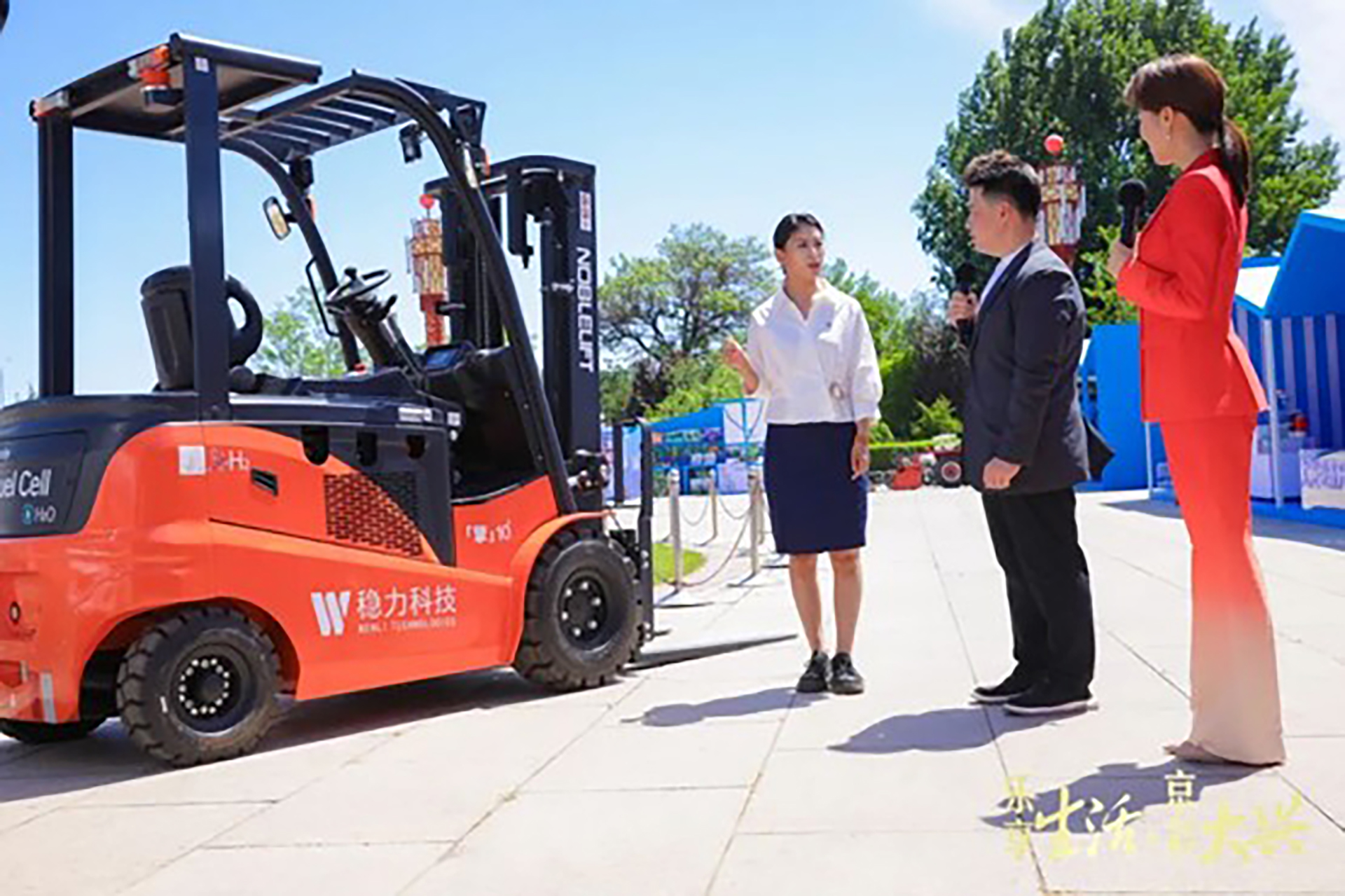 在大興國際氫能示范區(qū)所承載的綠色低碳主題展區(qū),圍繞“2030碳達(dá)峰與2060碳中和”的雙碳目標(biāo),主要展出具有代表性的綠色低碳產(chǎn)業(yè)項目。北京穩(wěn)力自主研發(fā)的燃料電池叉車「擎」10+京彩亮相,以“零污染 零排放”、“加氫3分鐘 工作6小時”的綠色發(fā)展優(yōu)勢,吸引了多家主流媒體的關(guān)注報道。
